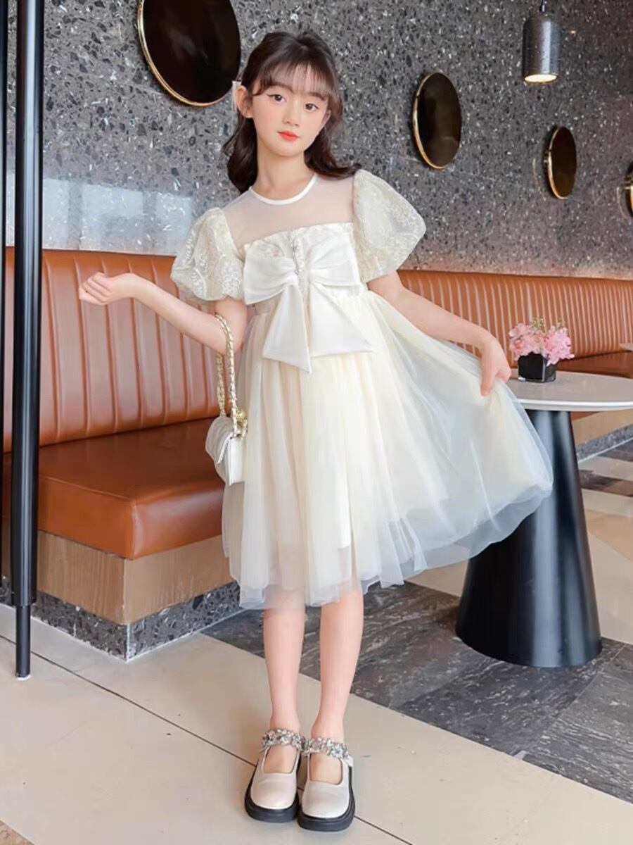 キッズドレス プリンセス ミディアムドレス 発表会 ピンク ホワイト リボン 子供ドレス 結婚式 シンプル お誕生日会 可愛いドレス
