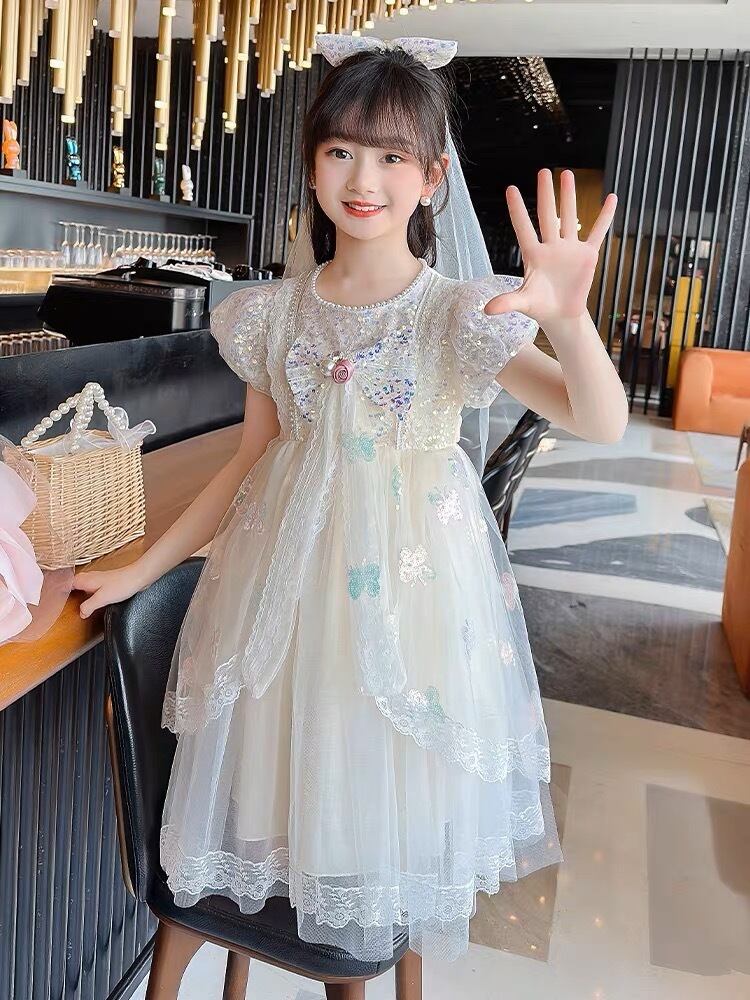 キッズドレス プリンセス ミディアムドレス 発表会 パープル ホワイト 子供ドレス 結婚式 シンプル お誕生日会 可愛いドレス