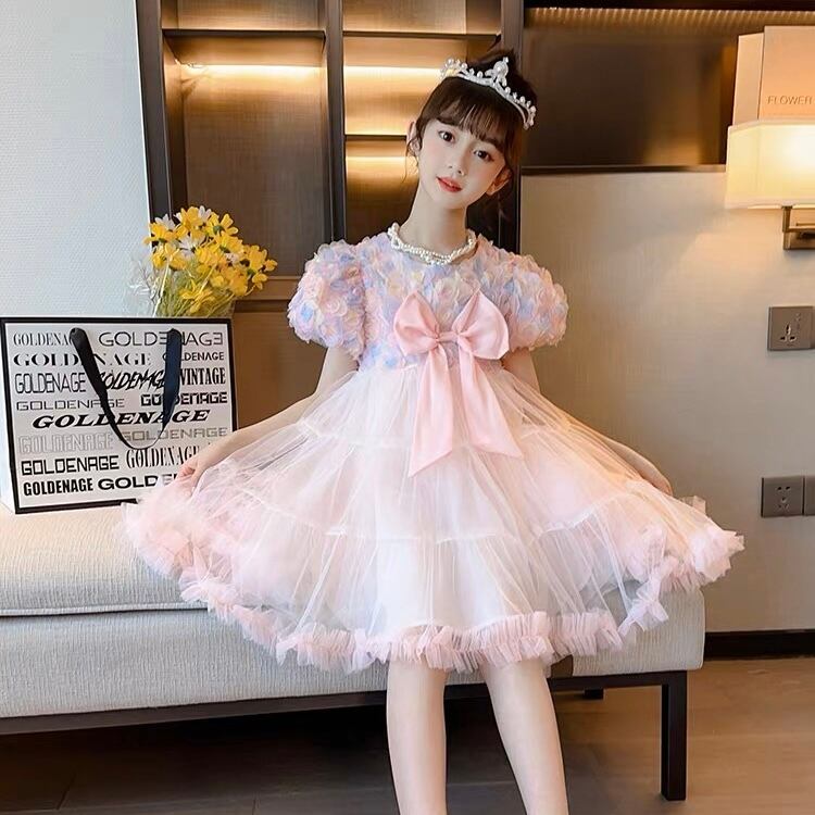 キッズドレス プリンセス ミディアムドレス 発表会 ピンク ブルー 子供ドレス 結婚式 シンプル お誕生日会 可愛いドレス かっこいいドレス