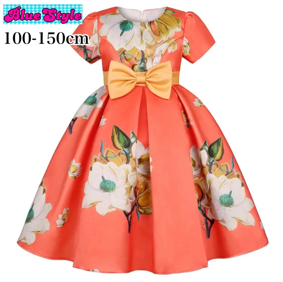 キッズドレス プリンセス ミディアムドレス 発表会 オレンジ ネイビー ピンク ホワイト 子供ドレス 結婚式 シンプル お誕生日会 可愛いドレス かっこいいドレス