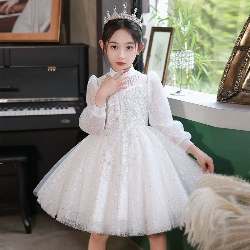 キッズドレス プリンセス ミディアムドレス 発表会 シンプル 子供ドレス 結婚式 お誕生日会 ホワイト お出かけワンピース おしゃれワンピース